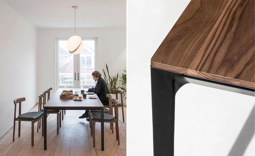 The Able Table is a family of tables. The tables offer a variety of solutions in size and materials by using cast aluminum legs and aluminum rails to support a variety of top options. The versatility takes the Ables anywhere in the home – dining, living, bedrooms, and eventually outdoors…
