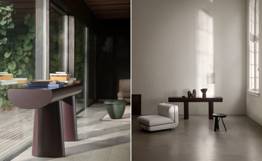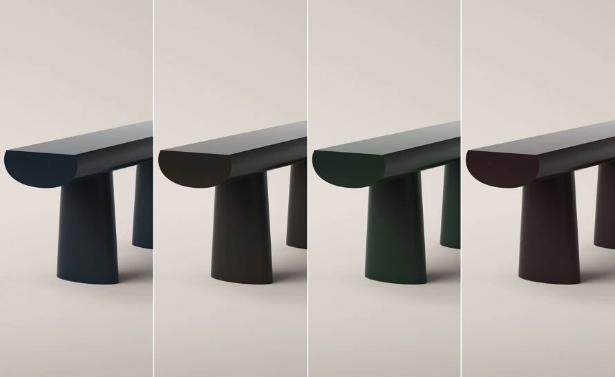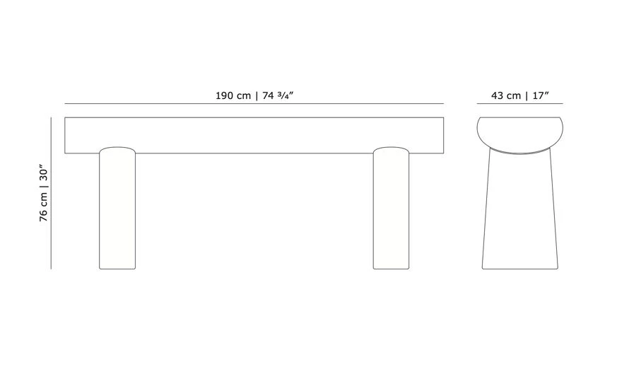 Tranquil and seductive, Aldo Bakker’s Console Table floats exquisitely between sculpture and furniture. It depicts the simplest concept of a table: two columns and a surface. The legs are an elongation of the line created by the tabletop. The tabletop and the base of the legs have the same width, making them equally important to the design. The distance between the legs is not fixed, but can be changed as preferred, adding to the sculptural quality of this piece.