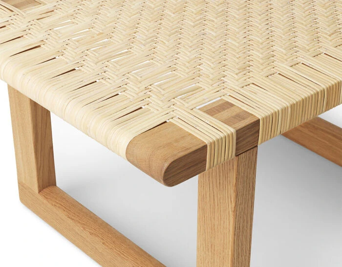 Versatile, timeless and carefully crafted, the BM0488S Table Bench was originally created to complement the BM0865 Daybed. The multi-functional piece forms part of Mogensen’s ‘building furniture’ concept – enduring furniture that could be added to and adapted over time in response to changing needs and living situations. Equally suited to use as a bench in an entrance hall or at the end of a bed as it is as a coffee table or side table, the independent piece exudes wellbeing wherever it is placed. The BM0488 is crafted in solid oak, where the dense and flawless inner portion of the trunks known as heartwood is skilfully shaped with traditional cabinetry joints and rounded edges that repeat in the legs and rails. Topped with a double–woven surface, the durable and decorative design will look beautiful for generations to come.