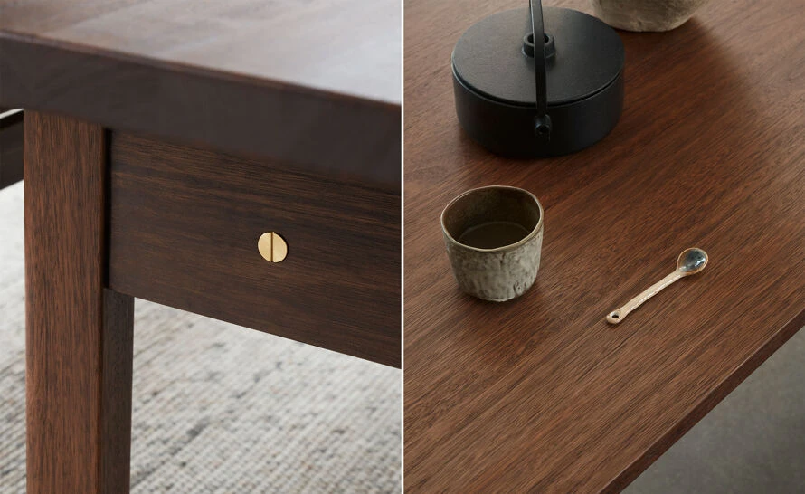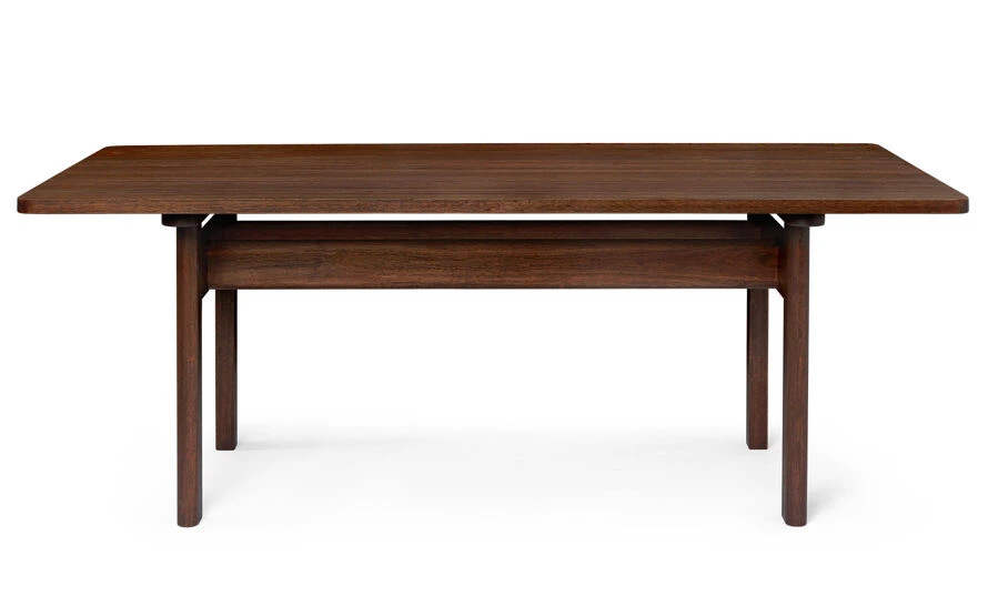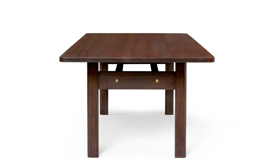Shaped from solid, dark-oiled FSC™-certified eucalyptus, the Asserbo Table exudes a simple stringency that alludes to the Shaker style. Designed in 1961 by Børge Mogensen to meet his own furniture needs, its gently rounded shape is punctuated with brushed brass screws. A piece with high utility value, the table is ideal for private and holiday homes, but also for restaurants and public spaces as a gathering point for meetings, meals and conversations.