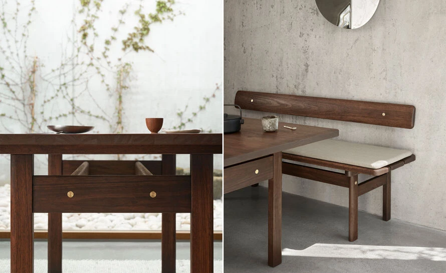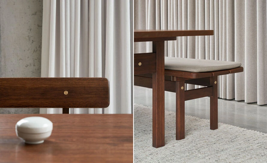 Created in 1961 for his private holiday home and originally produced in pine, Børge Mogensen’s Asserbo series is now reissued in solid, dark-oiled FSC™-certified eucalyptus, sourced from sustainable forestry and renowned for its understated beauty and high durability. Radiating visual calm and simple functionalism, the series’ bench and chair look to the Shaker style for their design cues. Stripped to their essence, they allow the materials speak for themselves. Gently rounded wooden lines are defined by visible brushed brass screws on design furniture of high utility value. With its informal expression, high-quality craft and visual clarity, the flexible Asserbo Series is ideal as a dining set or used standalone. The bench is offered with either a fixed or wall-mounted backrest, as well as a loose textile cushion for extra comfort.