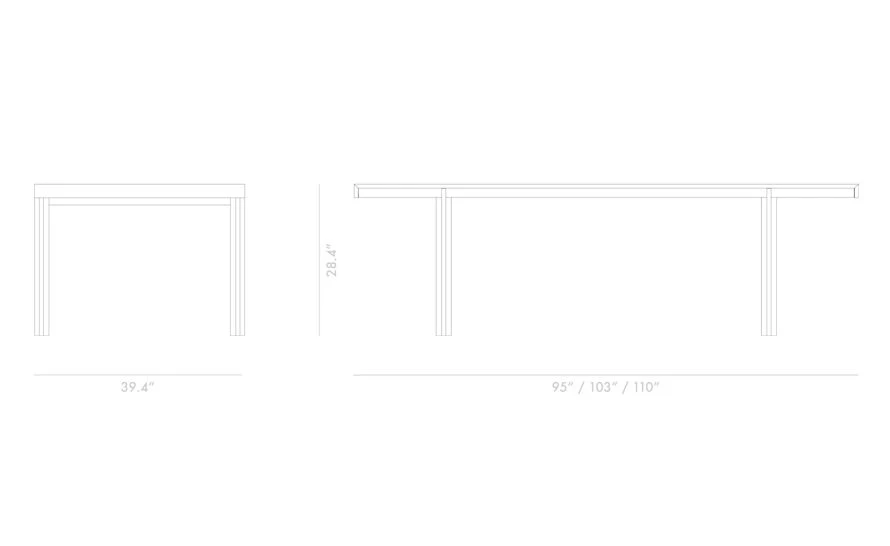 95″ w | 39.4″ d | 28.4″ h