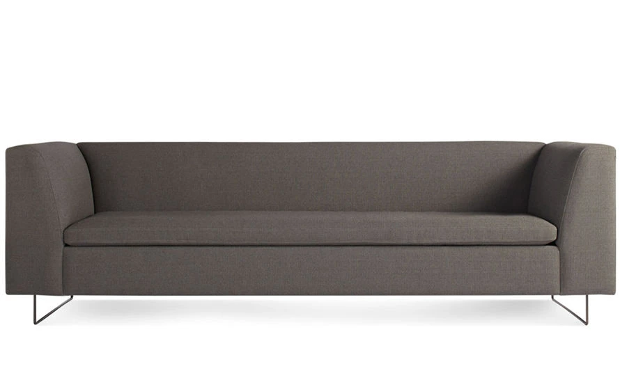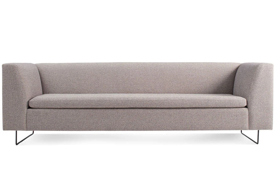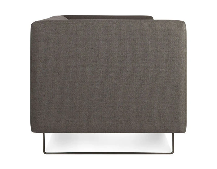 Solid hardwood & plywood frame, foam, blackened metal base, upholstery