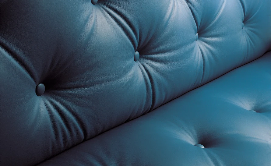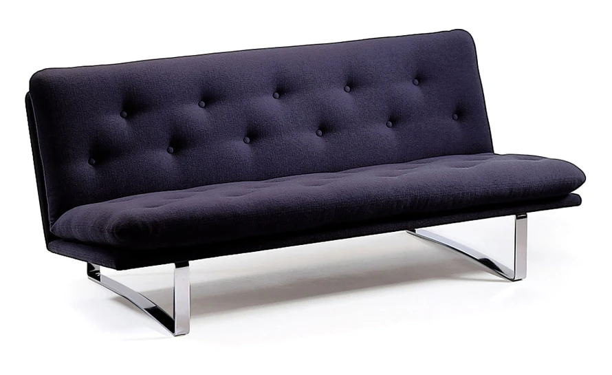 A sofa by Kho Liang Le. The simple lines of the C684 sofa make it an elegant choice for any space, public or private. Beautifully tufted on a loose seat and back cushion. The frame is of pressed beech upholstered with molded foam and sits on a chromium plated metal base. Restrained simplicity.