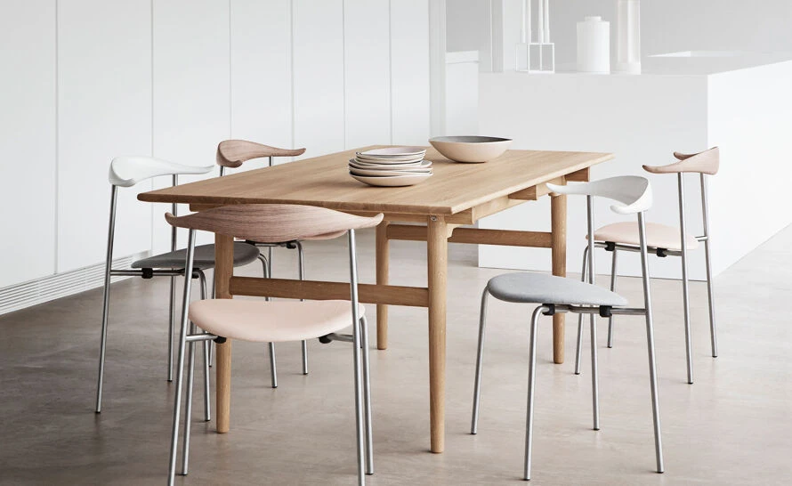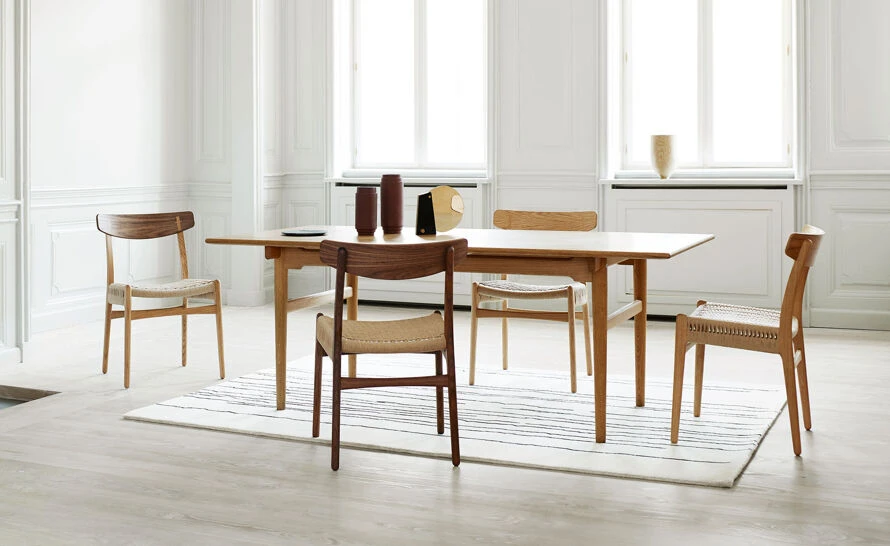The simple and elegant CH327 is the ultimate solid wood dining table. It embodies Wegner’s ideology and spirit for simplicity. Wegner, with his unique understanding of wood, its possibilities and limitations, created many designs each with its own personality yet in a consistent language. The CH327 is a modern classic, perfect for dining but also makes a handsome desk or meeting table.