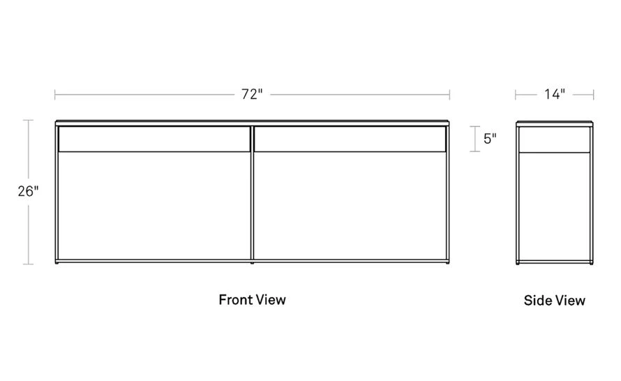 72″ w | 26″ h | 14″ d | drawer: 5″ h