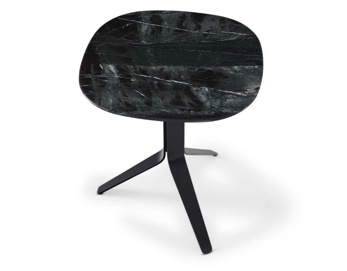 The Dante side table is offered with either a square or triangle top in your choice of wood, marble or granite. The base can be powder-coated in matte black or brown metallic.