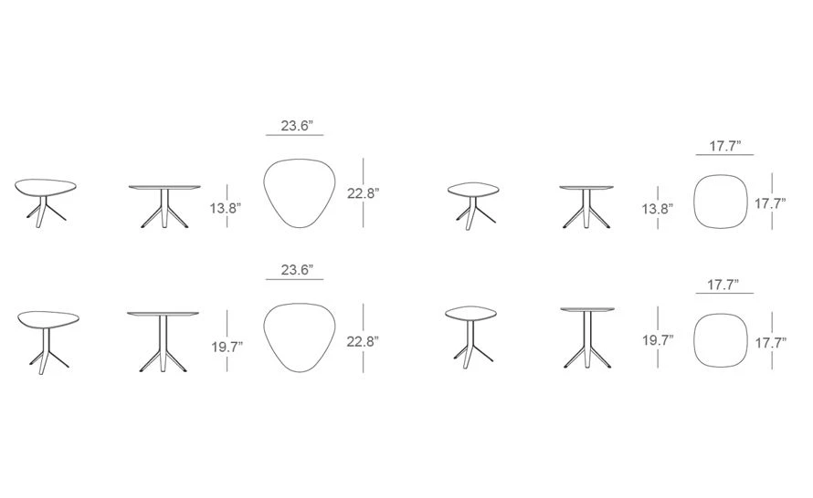 triangle top side table: 13.8″ or 19.7″ h | top: 23.6″ w | 22.8″ d