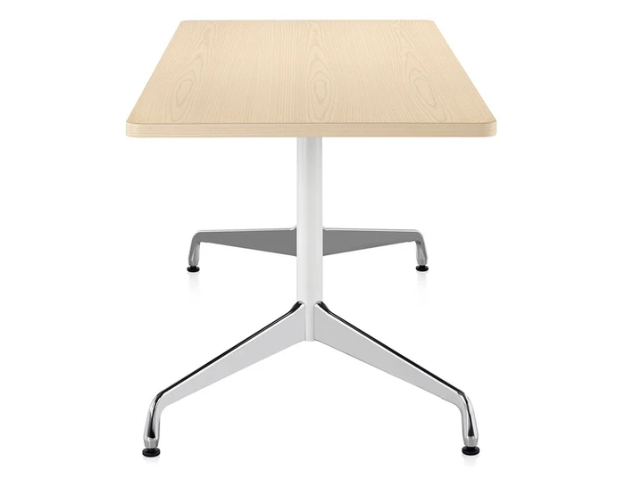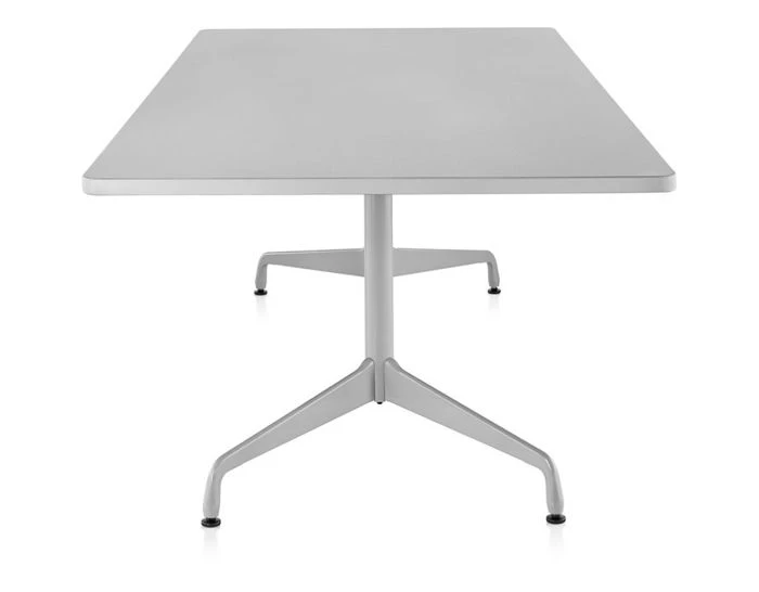 Like all fine works of art, Eames tables have the strength and durability to provide reliable performance for decades to come. The rectangular table is offered with your choice of column and base finish. Laminate and veneer tops are 1 1/4″ thick. Thin profile HPL tops are 1/2″ thick. Glass tops are back-painted, with a satin etch finish to reduce the appearance of fingerprints. Tops up to 42″×78″ are 1/2″ thick; tops 42″×84″ to 60″×120″ are 3/8″ thick with a Formcoat® substructure. Laminate tops have matching vinyl edge finish. Veneer tops have matching veneer edge. Thin profile HPL tops have black edge. Tables are offered with adjustable glides. Optional center cutout grommet & casters (wheels) are also available (please call to specify). Please note: larger sized tables may be in two pieces which will have a visible seam.