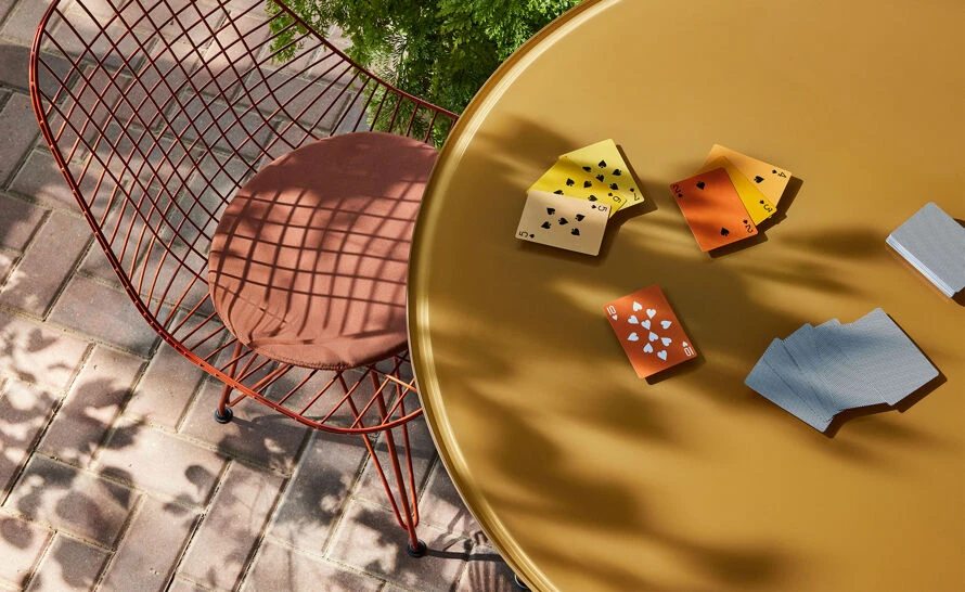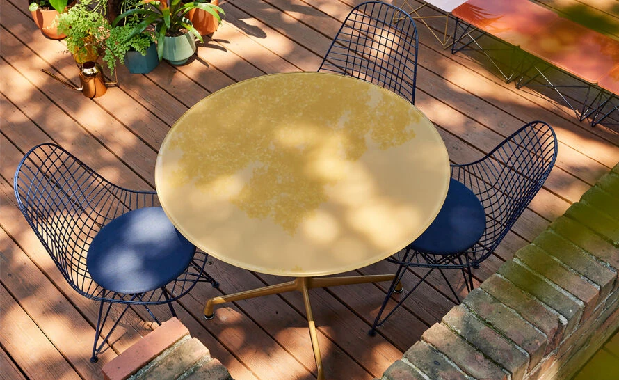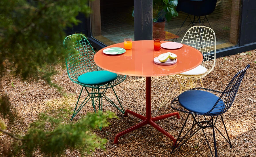 In a new light, for the Herman Miller x HAY Collection, the Danish design house HAY thoughtfully reimagines Eames classics in new vibrant colorways. The Eames Round Dining Table is now available in a unique cast-glass top version. This version of the Eames Round Dining Table is suitable for outdoor use.
