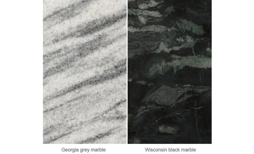 Stones are sourced from four North American quarries and are named after their home state: Georgia Grey Marble, a cloudy grey stone from the same location used in the 2004 renovation of New York’s Museum of Modern Art; and Wisconsin Black Marble, a unique dark stone speckled with lustrous green and grey veins.