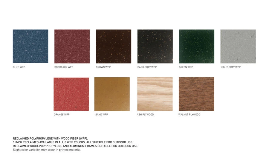 Recycled aluminum, reclaimed polypropylene, plywood