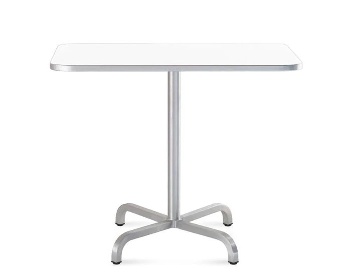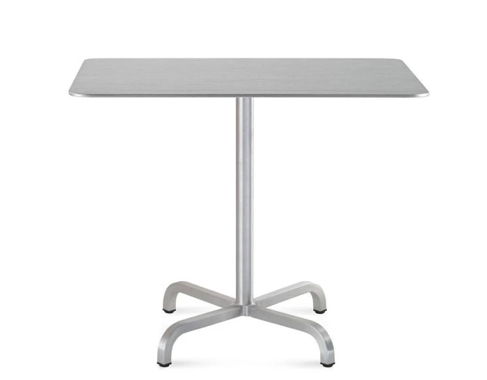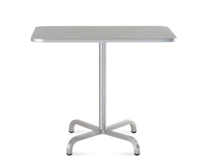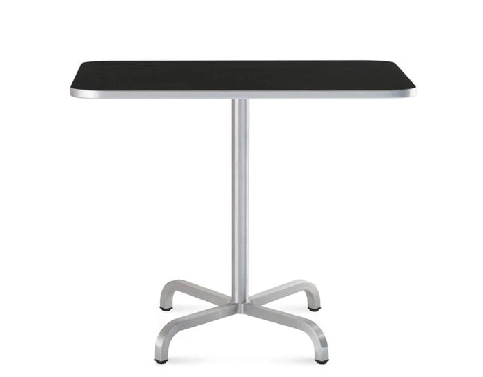The DNA of Emeco’s first chair, 10-06, runs through 20-06, but this new collection belongs to the new century. The 20-06 tables are offered with a brushed aluminum base and adjustable glides. The top is available in a variety of options. Brushed aluminum & accoya wood tops are suitable for indoor/outdoor use. Laminate tops have an exposed plywood edge.