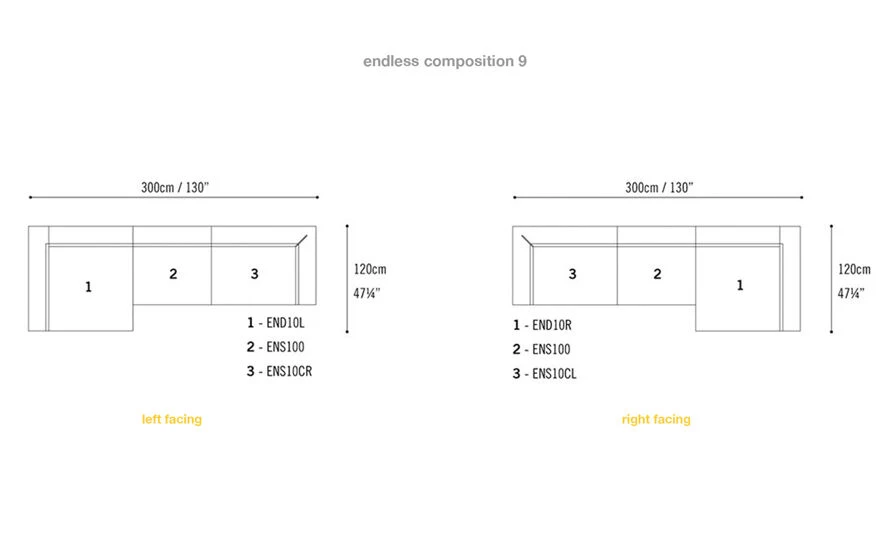 endless composition 9: 130″ L | 47.25″ d | 27.5″ h | seat: 16.5″ h