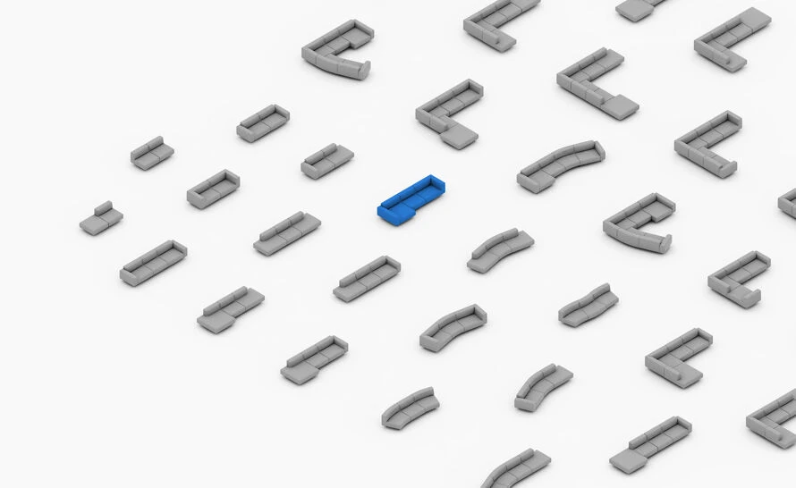 Endless is a modular sofa system with an endless amount of possibilities; This modular sofa, with it’s infinite possible configurations, has a variety of options for modules, terminal pieces, seat depths, and arms heights.