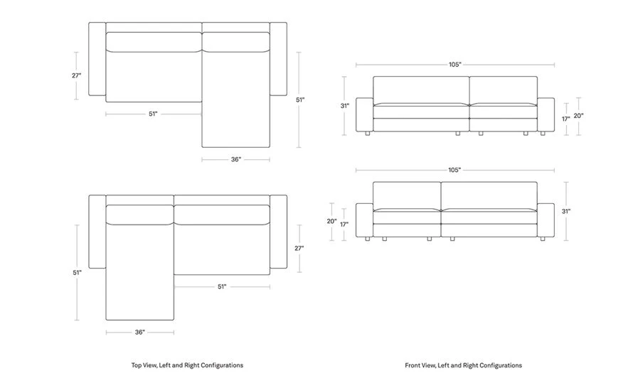* High resiliency foam cushions with fiber padding wrap provide a soft plush sit
