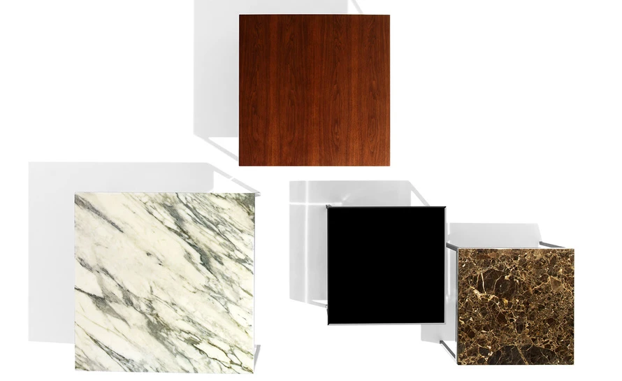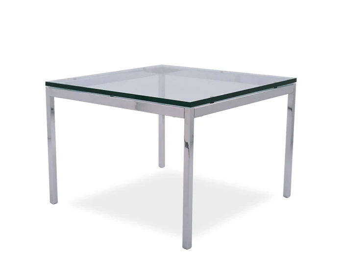 These versatile tables are available with your choice of either glass, wood veneer, granite or marble top. Top is 5/8″ thick polished plate glass or coated marble. Base is available in polished or satin chrome. The collection includes coffee or end tables in various sizes.