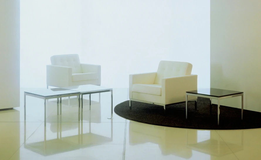 Like so many of her groundbreaking designs that became the gold standard for the industry, the 1961 executive collection, including the coffee and end tables, made their way into the pantheon of modern classics. Florence Knoll’s designs are reserved and cool, severe and angular, reflecting the objective perfectionism of the early 1960s.