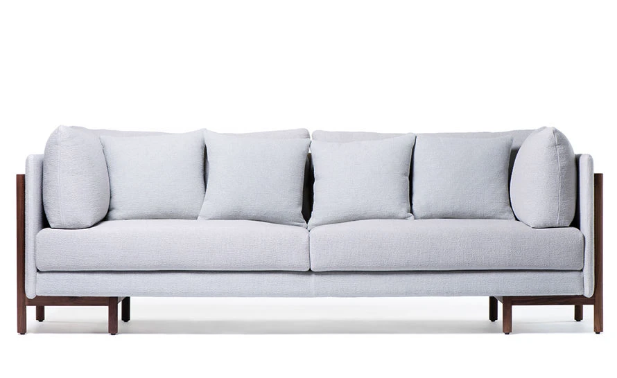 Frame medium sofa includes: 2x seat cushions, 2x back cushions, 2x arm cushions & 2x small throw pillows