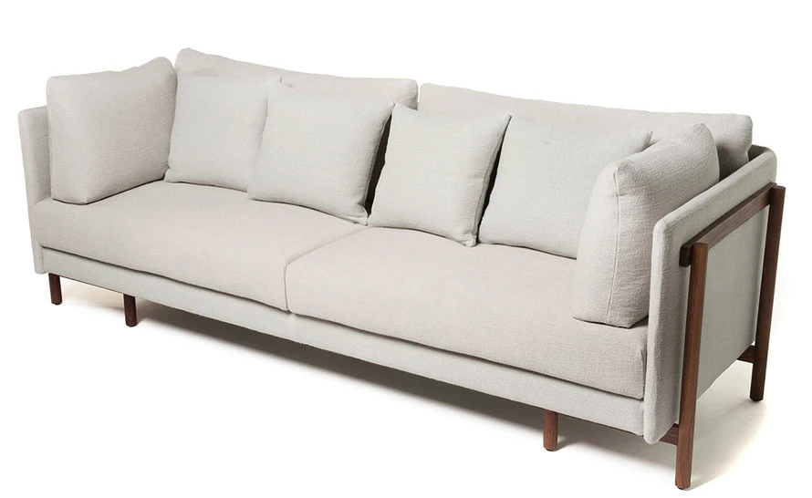 Available in American black walnut, American white oak, or European Ash in a range of finishes, and a range of fabrics. Optional uncoated solid brass Tray available separately. Back cushions are made from a combination of quilting and duck down. Seat cushions are made from a combination of memory foam and high density foam. Available in various size and configurations. Please call to specify custom configuration.