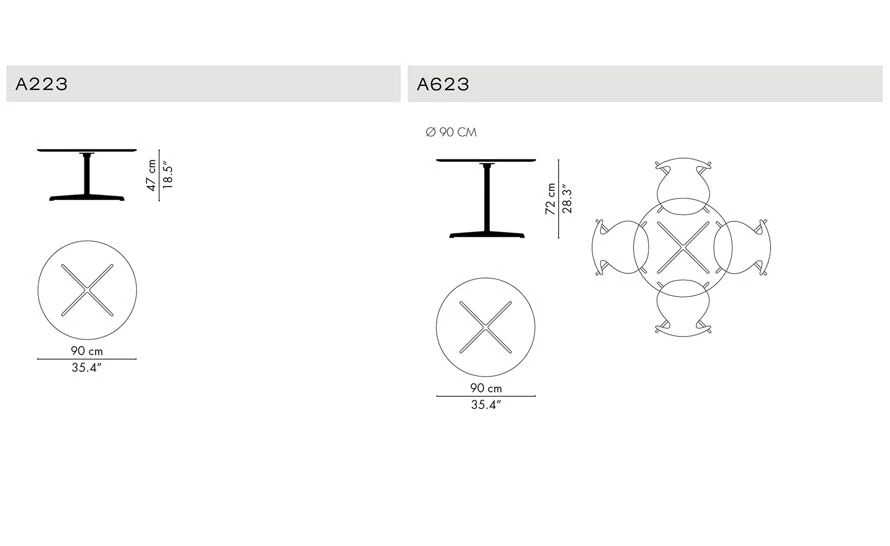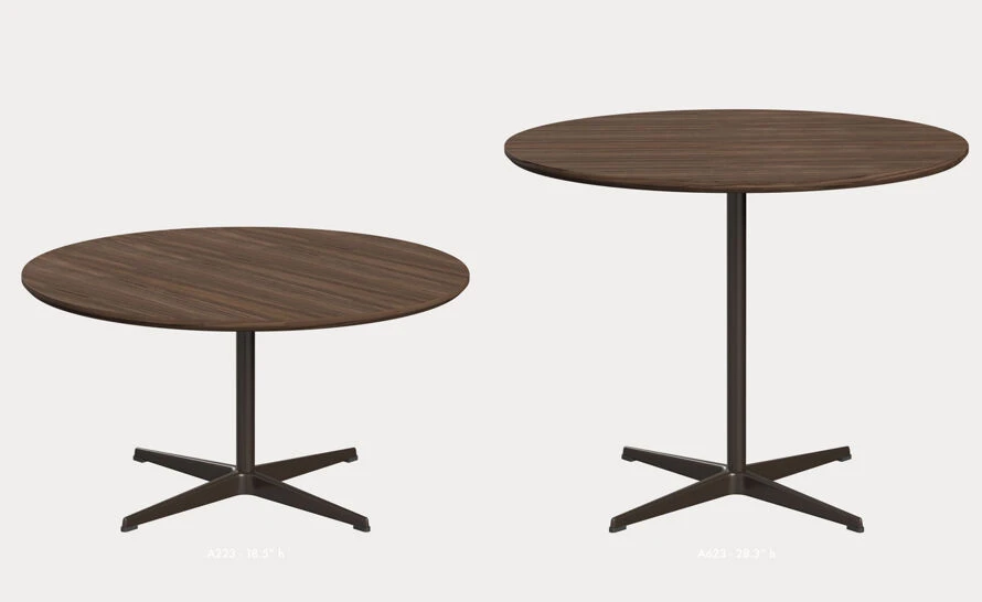 The Table Series was designed by Danish poet, scientist, mathematician, and designer, Piet Hein, with contributions to the base design by Bruno Mathsson and Arne Jacobsen. This collection of tables comes in many variations of material, shapes and sizes, making it ideal for a variety of spaces including the home. This series includes the superellipse, supercircular, circular, square and rectangular tables. The bases may be span legs, shaker base, 4 or 6-star pedestal. The top is a laminated synthetic material with aluminum edge detail or walnut veneer with a matching edge, both consist of laminated chipboard with bevelled edge profiles. Base is available in your choice of powder-coated finish or chrome.