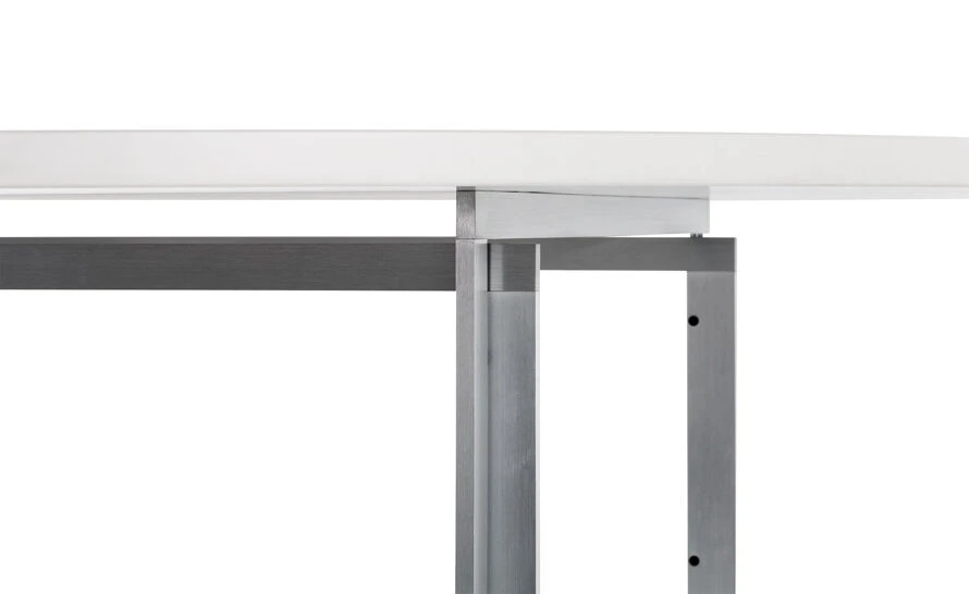 The PK58 – is part of Fritz Hansen’s “Poul Kjaerholm collection”. This table is inspired by and based on Poul Kjærholm’s table from 1963, PK54, but the PK58 has never been in production before. The design differs in height and choice of materials. The surface feels “stone-like” yet soft. The material is sturdy, smooth and easy to maintain. The frame has been anodized to protect against scratches and to prevent the material from becoming grey and dull.. This versatile table is suitable for any environment, from lounges and waiting areas to private homes. The PK58 is a fine choice together with a great variety of chairs, but is best matched with the PK8 chair.