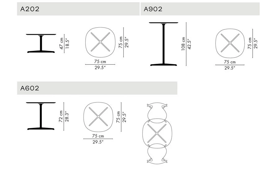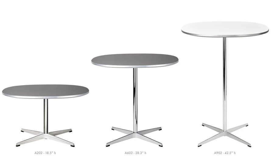 The Table Series was designed by Danish poet, scientist, mathematician, and designer, Piet Hein, with contributions to the base design by Bruno Mathsson and Arne Jacobsen. This collection of tables comes in many variations of material, shapes and sizes, making it ideal for a variety of spaces including the home. This series includes the superellipse, supercircular, circular, square and rectangular tables. The bases may be span legs, shaker base, 4 or 6-star pedestal. The top is a laminated synthetic material with aluminum edge detail or walnut veneer with a matching edge, both consist of laminated chipboard with bevelled edge profiles. Base is available in your choice of powder-coated finish or satin aluminum.