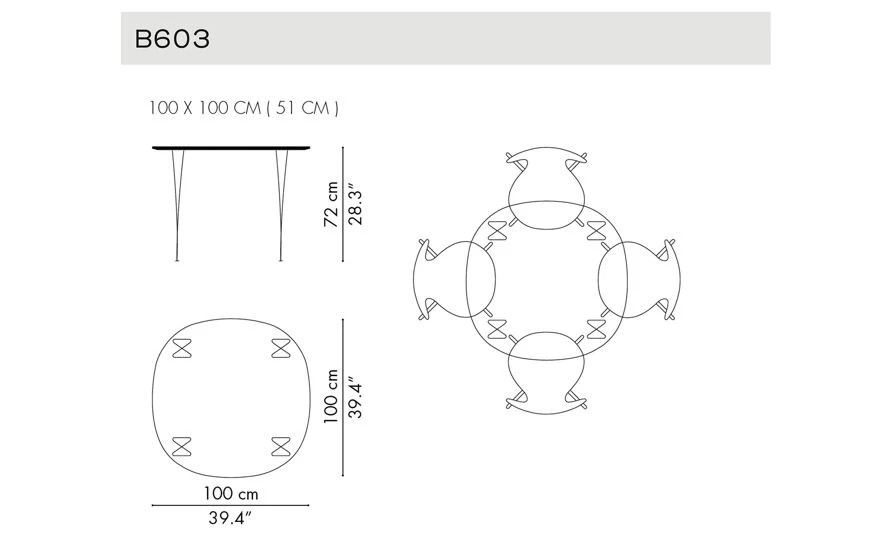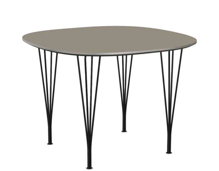 The Table Series was designed by Danish poet, scientist, mathematician, and designer, Piet Hein, with contributions to the base design by Bruno Mathsson and Arne Jacobsen. This collection of tables comes in many variations of material, shapes and sizes, making it ideal for a variety of spaces including the home. This series includes the superellipse, supercircular, circular, square and rectangular tables. The bases may be span legs, shaker base, 4 or 6-star pedestal. The top is a laminated synthetic material with aluminum edge detail or walnut veneer with a matching edge, both consist of laminated chipboard with bevelled edge profiles. Base is available in your choice of powder-coated finish or chrome.
