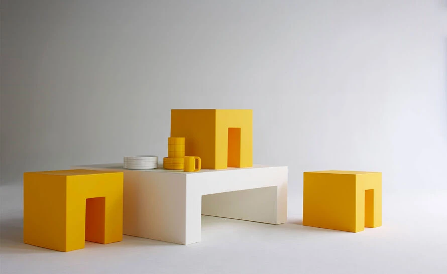 The Vignelli low table is available in your choice of white, light grey & dark grey. The collection is completed by the big bench & cube.