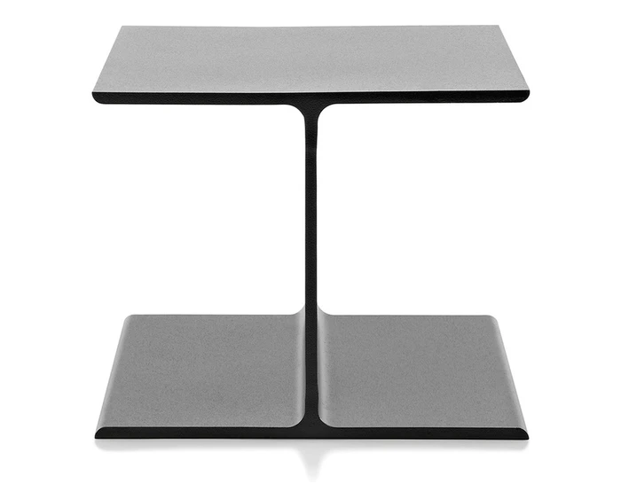 A versatile pedestal, side table, or coffee table, Ward Bennett’s I Beam Tables pay tribute to modern architecture and industrial exactness. Part of Ward Bennett’s inaugural furniture collection for Brickel in 1963, the deisgn was inspired by a piece in his own long island vacation home. Crafted from matte black powder-coated cast aluminum and either left bare or topped with glass or stone, the I Beam Tables offer an auxiliary surface and a witty artistic statement.