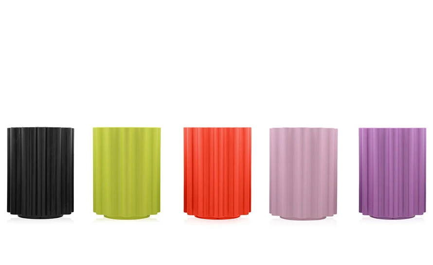 The Colonna stool is included in the “Kartell goes Sottsass – A Tribute to Memphis” collection, launched in 2015 in homage to the movement founded by design guru Ettore Sottsass. Available in five colors (red, lilac, purple, green and black), Colonna’s main asset is its versatility, allowing it to be used as either a stool or a side table.