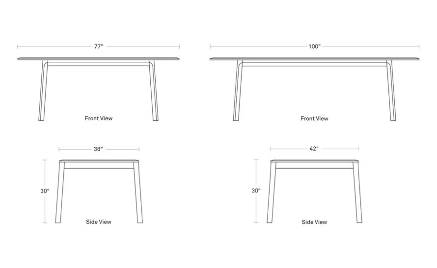 Dinner and a show. Stunning solid wood struts its stuff while elegant sloping edges give way to unexpected beauty and knees. Shapely legs showcase the wood grain to keep things interesting under the table. Well-mannered and well-made by our friends in Wisconsin. Available in two size options.