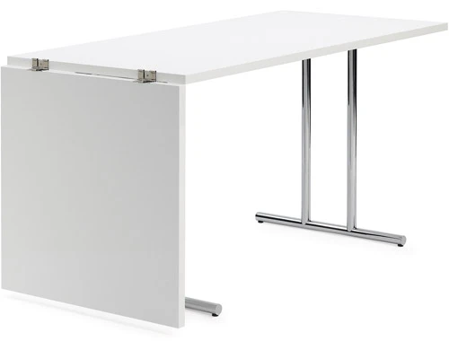 Authorised by The World Licence Holder Aram Designs Ltd, London. Lou Perou features a chromium-plated steel tube frame. The table-top is made of MDF with high-gloss lacquer in your choice of black or white. Part of the table-top can be lifted up to extend the table.