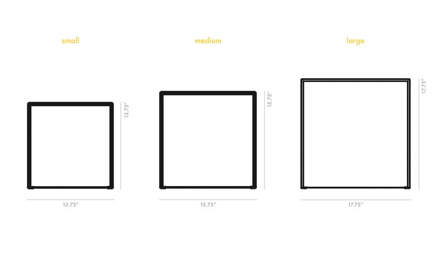 small: 13.75″ w | 13.75″ d | 13.75″ h