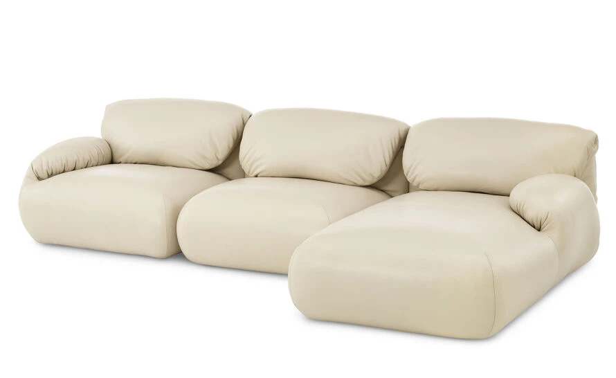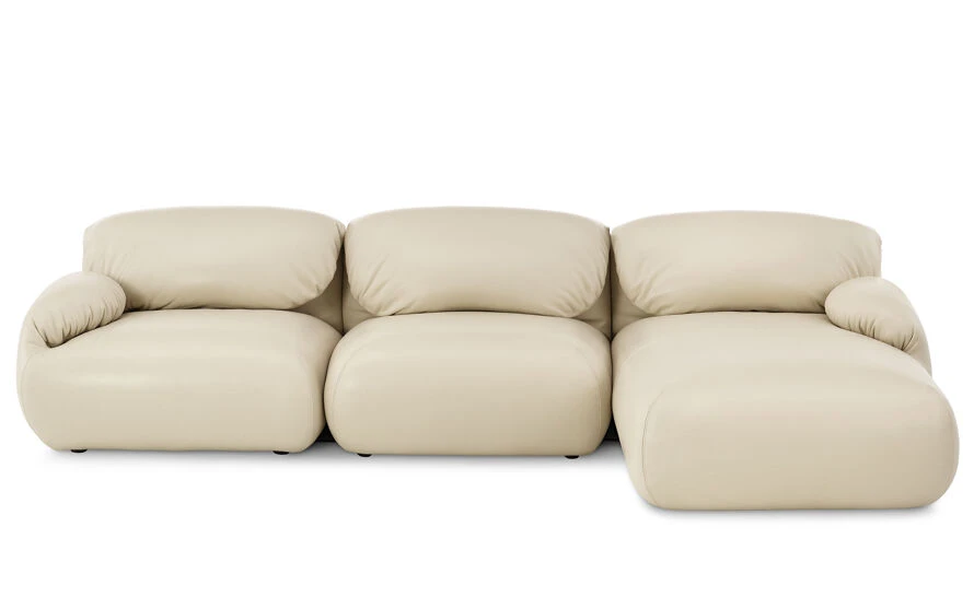 * 3 seat sofa with chaise is composed of 1x single-arm chair, 1x armless chair, & 1x chaise
