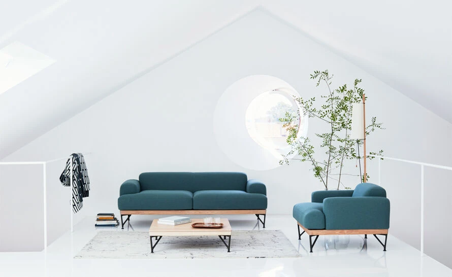 The Armstrong sofa is a cool and brooding design with an exposed timber frame and cast iron legs. It is simple, comfortable & stylish. Designed by Matthew Hilton for his eponymous brand, and manufactured by De La Espada craftsmen.