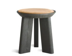 Three-legged friend. Thick and shapely solid wood stays well-grounded. Use Mimi as a stool, side table or room emotional support companion. Mimi comes capped with a leather pad for added comfort and savoir faire.