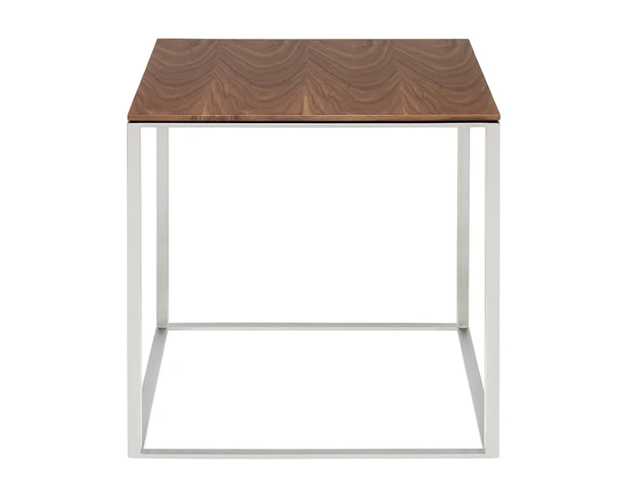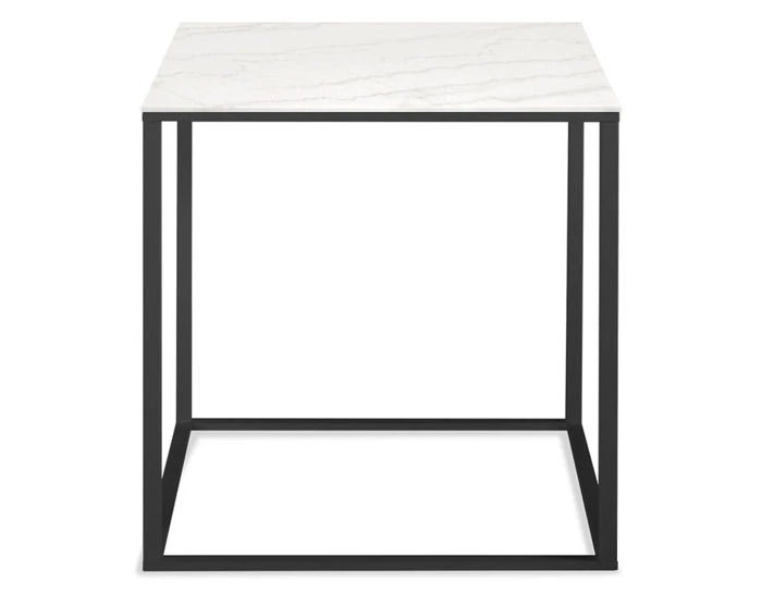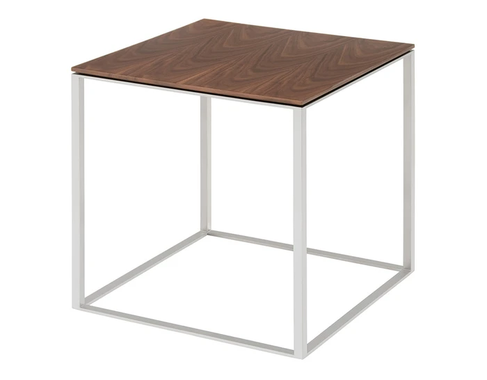 Nothing but the bare essentials here. Sublime stainless steel or powder-coated steel in white or black gently supports your choice of top. Select from marble (honed Carrara marble stone slab), walnut (plain-sliced veneer) or black mirror (tinted, black tempered glass) tops. Please note that black mirrored top is only available with a black base. The Minimalista series includes side, coffee and console tables.