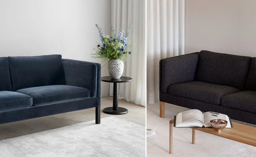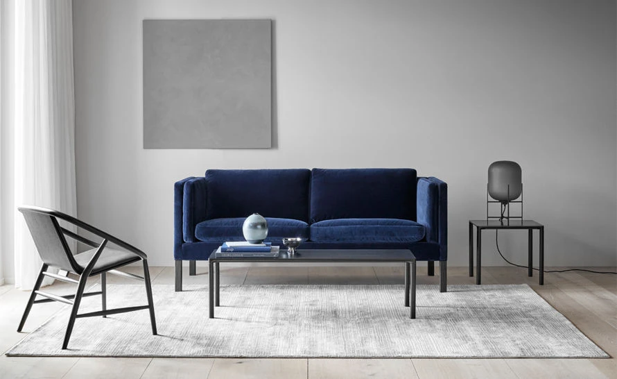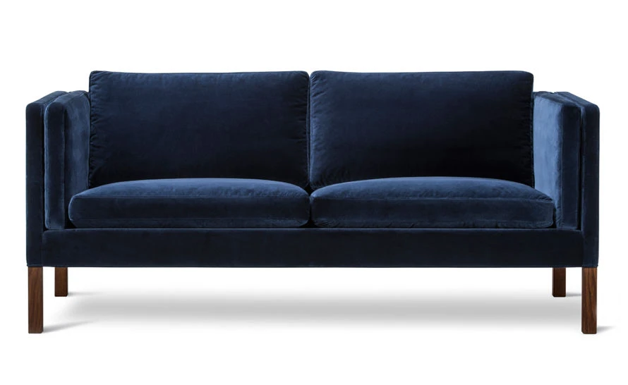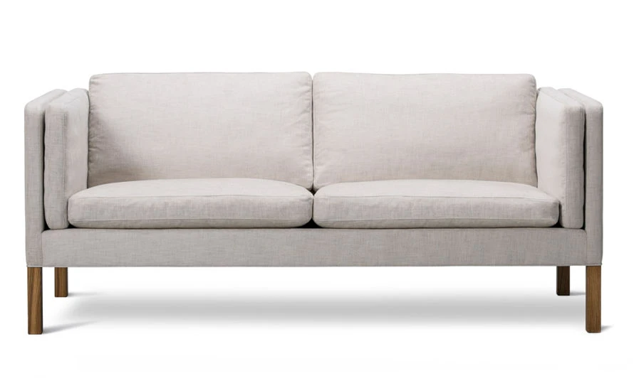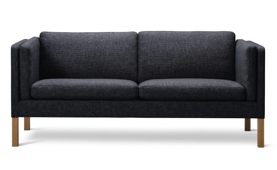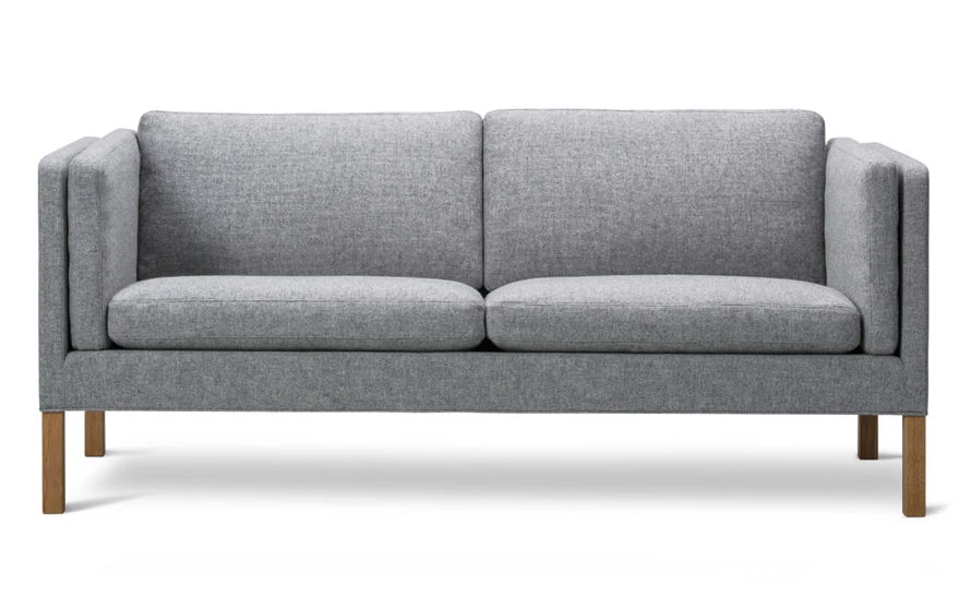 The Mogensen 2335 2,5 seat sofa was designed by Borge Mogensen’s son, architect Peter Mogensen, as a completion of his father’s last furniture series. The extended width of the cushions softens the formality of the design in a respectfully unpredictable way.