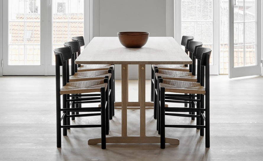 Inspired by traditional Shaker tables, Mogensen designed C18 in 1947 as a durable table for everyday use. Available with additional plates extending the table top by 15.75″ at each end.