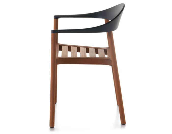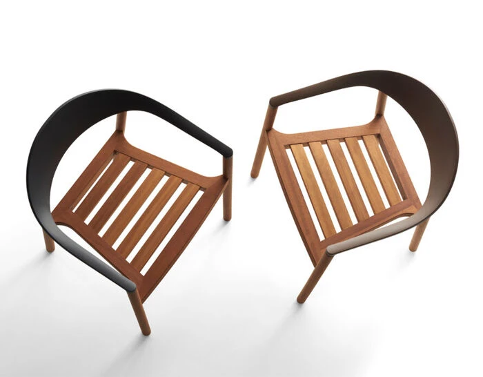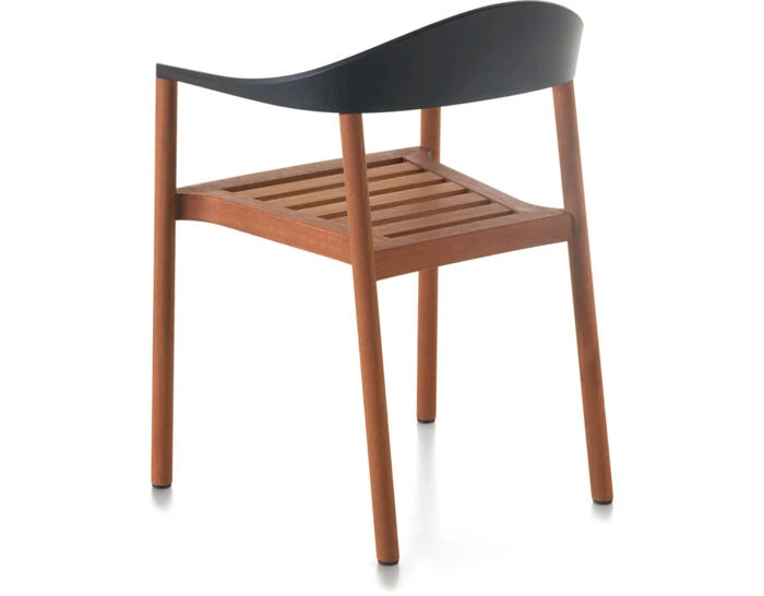 “The Monza armchair is conceived as a simple wood-construction which formally refers to a typology of chairs originating in Scandinavia. The chair’s main character is defined by a back/armrest in plastic moulding, which on the one hand serves the chair’s structure and on the other provides comfort and colour.” -Konstantin Grcic