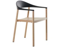 Monza was inspired by the Italian city of Monza, a famous racing circuit known for its parabolic curve. Made with natural lacquered ash wood and a polypropylene back. Also available as an outdoor version. Stackable up to 4 chairs high.