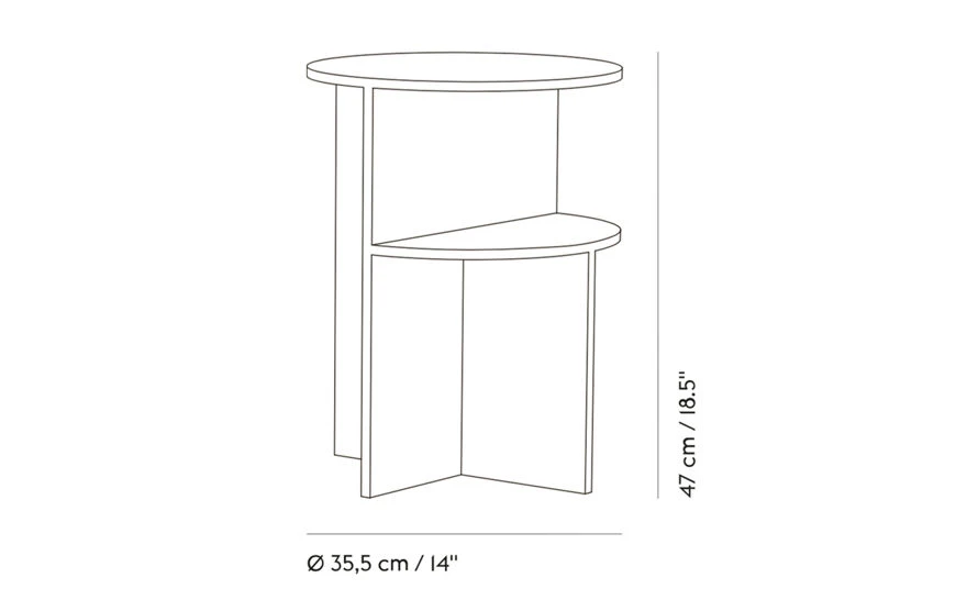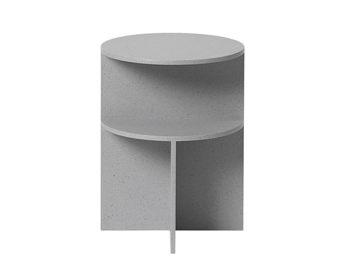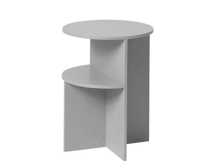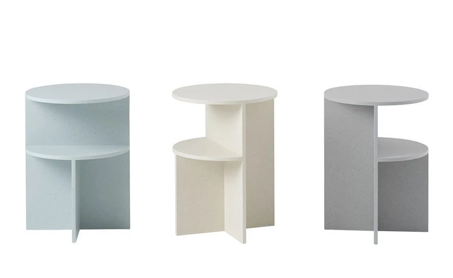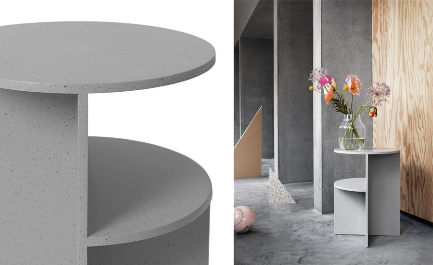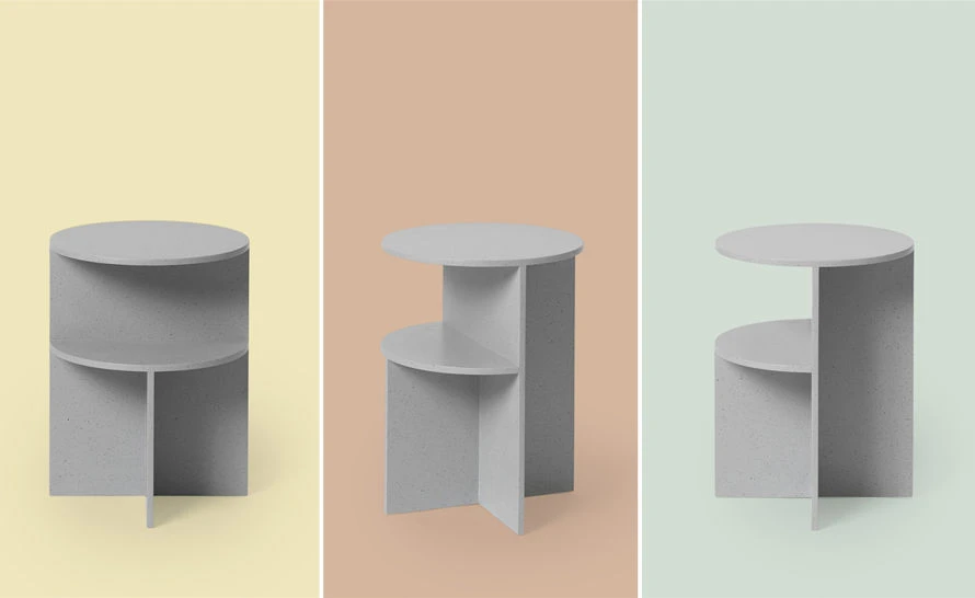 The Halves table is made from large casted sheets of acrylic stone composite, that are cut into shapes and welded together. Lastly, the surfaces are grinded and polished giving the side table its soft feel and seamless joints.