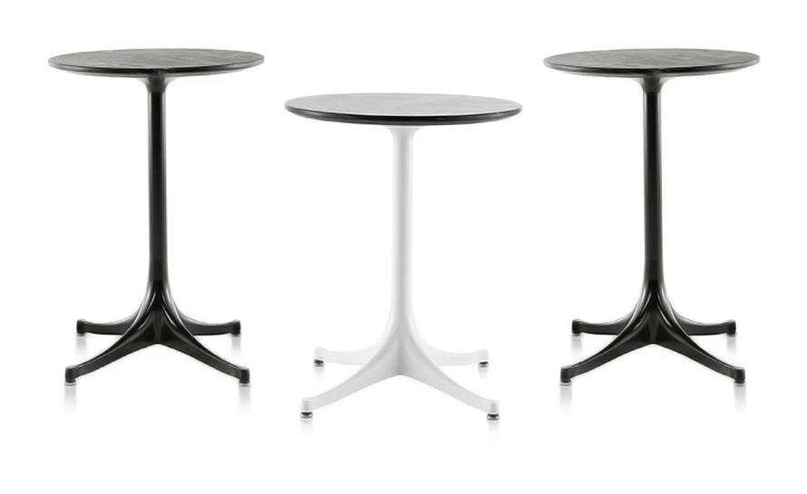 The George Nelson tables reflect the clean lines and pleasing balance of style and function that characterize all his furniture creations. The Nelson Pedestal Table Outdoor has been updated with hardy materials that will stand up to the elements. They offer an auxiliary surface to complement any grouping of outdoor furniture.