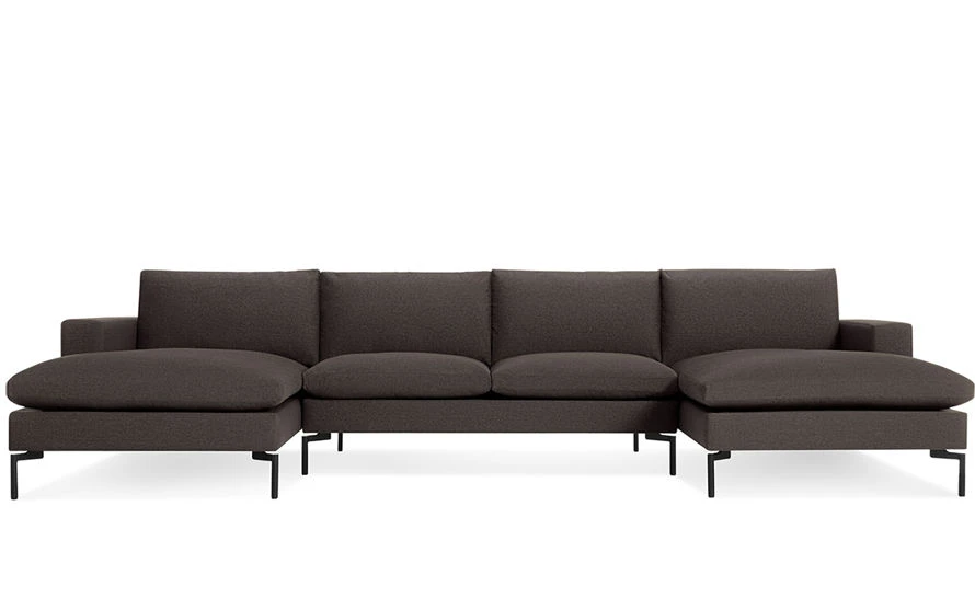 Sometimes it is not about starting from scratch, but rather revisiting past designs and making them better. The New Standard modern u-shaped sectional sofa is simplicity at its best with a twist. Wide arms and inviting loose cushions all come together with tuned proportions and show stopping legs. The New Standard series is offered in four fabrics, two leathers, two leg finishes and an array of shapes to suit any space.