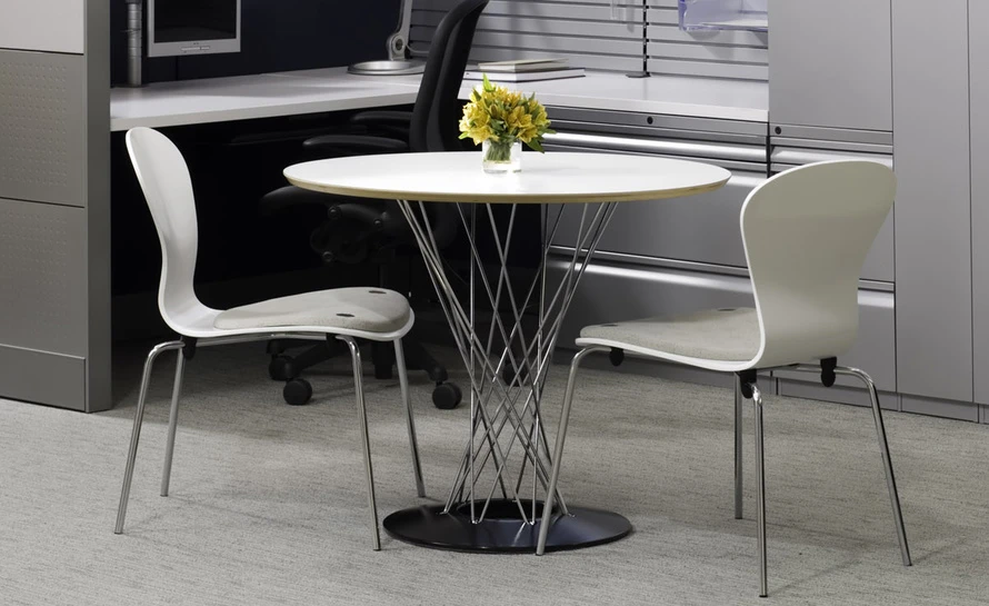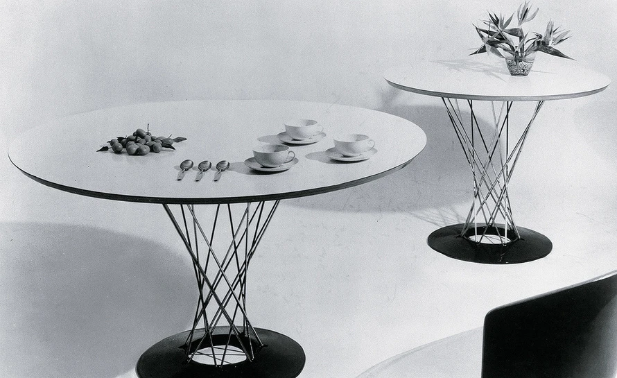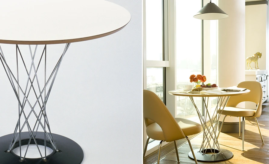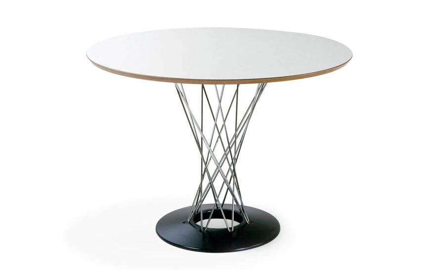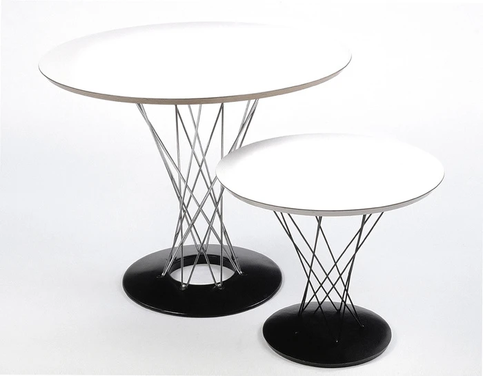 The Noguchi Cyclone table was conceived in 1953 as a rocking stool made of metal wire and wood. Noguchi’s playful object was manufactured the following year in varying sizes, and later evolved into a table that became a companion piece to the Bertoia wire children’s chair. At the suggestion of Hans Knoll, Noguchi’s small table was enlarged to full size in 1957.