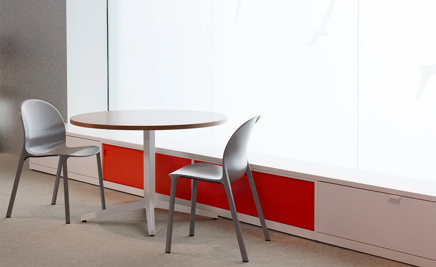 Jonathan Olivares’s meticulously executed design brings a refined sculptural presence to indoor and outdoor environments alike. The gracefully contoured form is carefully shaped to offer maximum comfort and the die cast aluminum shell is available in a palette of bright, contemporary colors.