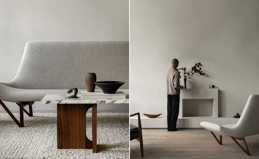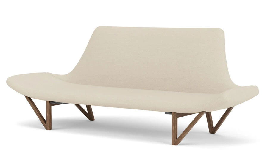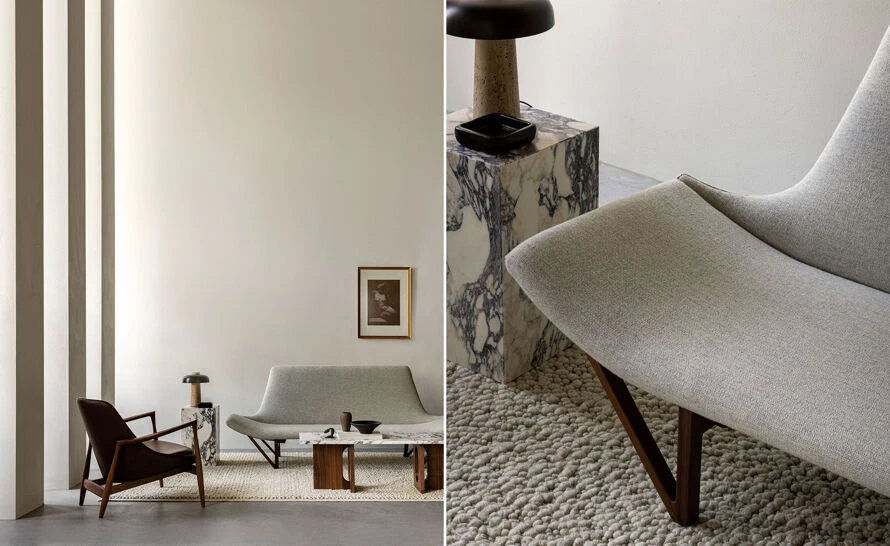 Their Pagode Sofa was presented for the first time at master cabinetmaker Thorvald Madsen’s stand at the Snedkerlauget exhibition in Copenhagen in 1956. It challenged established design with its significant idiom; light and precise in its design language and inspired by Japanese architecture and temple construction. The Pagode Sofa never quite achieved the same status as the couple’s other pieces of furniture during their lifetime. But today its urban, unique and expressive form is enjoying new relevance in modern spaces.