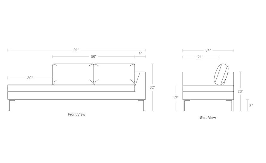 91″ W | 32″ h | 34″ d | seat: 17″ h | legs: 8″ h