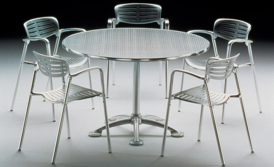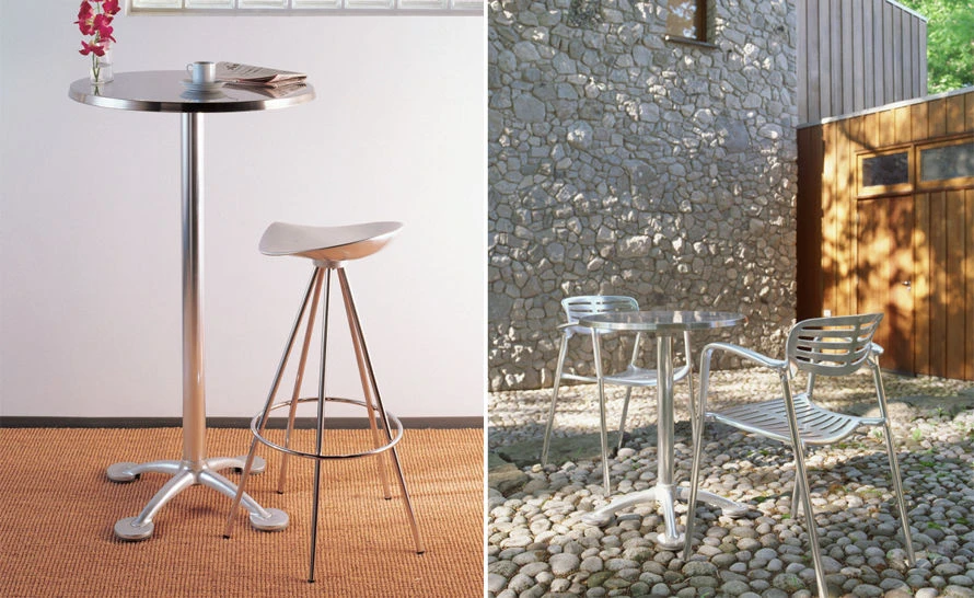 The Pensi Table, with its beautifully polished cast aluminum base, is the perfect match to the award-winning Toledo Chair, also designed by Jorge Pensi. The table is available in a range of shapes and sizes, from a small café table to a generous table for six, all offered in two unique top finishes suitable for indoor/outdoor applications.